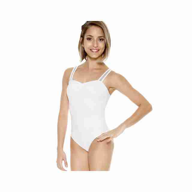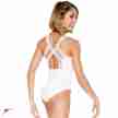 Dit balletpakje heeft gekruiste bandjes op de rug. De bandjes zijn sierlijk afgewerkt met gaas ertussen. Door het soepele en elastische materiaal geeft dit model u veel bewegingsvrijd tijdens het dansen. Het pakje is te verkrijgen in verschillende kleuren.